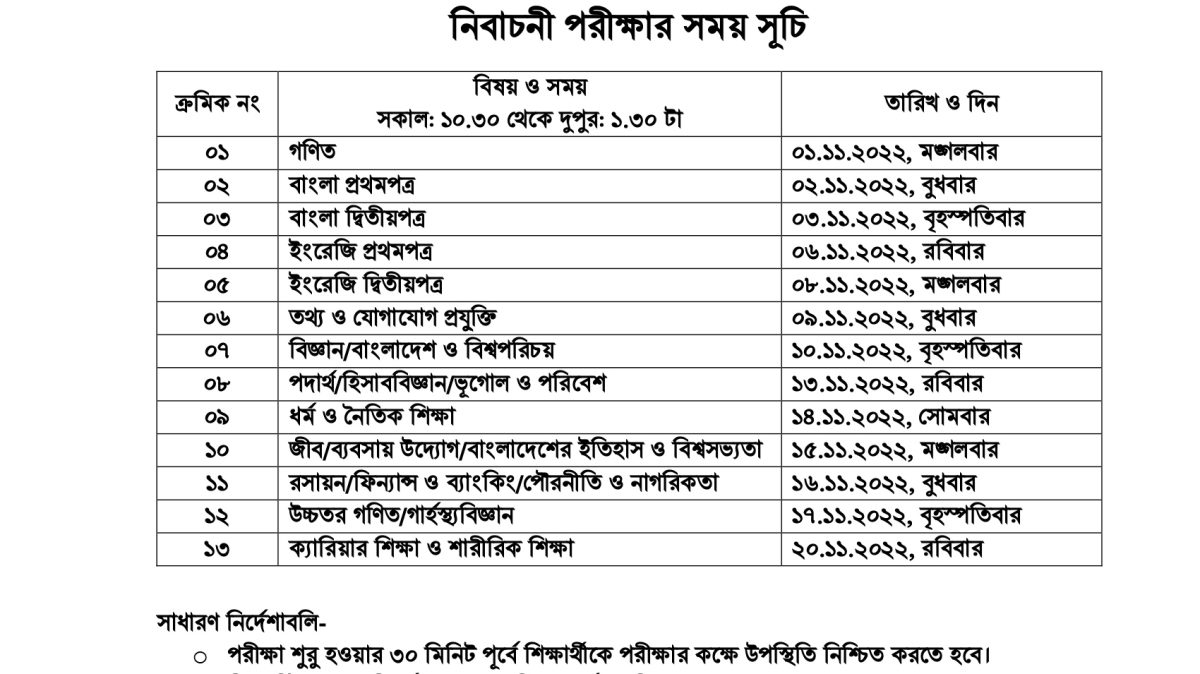 এসএসসি পরীক্ষা 2023 এর মডেল টেস্ট-01 এর সময় সূচি